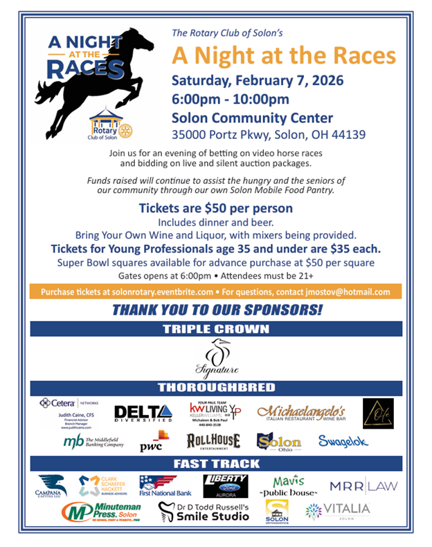On October 24th, 2025, Rotary Club of Solon was joined by Lowell Perry, Jr. of the Greater Cleveland Film Commission (GCFC), of which he is the Chief Diversity Officer and Vice President of Corporate and Community Engagement. We learned that the GCFC does so much more than film movies here in Ohio. They are responsible for nearly $1.4 billion in gross economic output and have contributed to the created of 7,100+ full-time equivalent jobs. Bob Oborn our District Governor and Phillip Weiss our Assistant District Governor stopped by for a visit too! | |